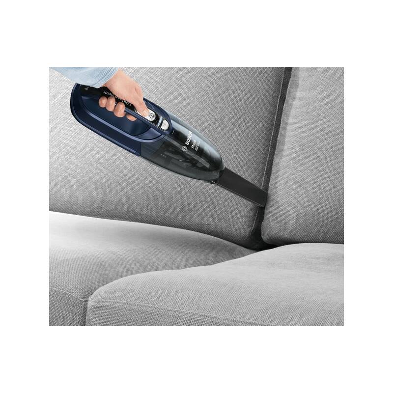 S ručním vysavačem Bosch BHN20L Move se rychle zbavíte drobných nečistot v domácnosti, na sedačce nebo třeba v interiéru vašeho vozidla. Spotřebič váží pouze 1,1 kg, díky čemuž se vám bude dobře držet v ruce a pohodlně ovládat. Vybrat si můžete ze dvou stupňů výkonu. Vysavač vydrží v provozu až 40 minut.