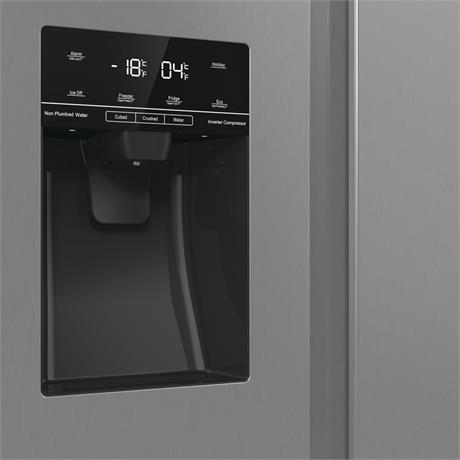 V americké lednici HISENSE RS5P535NTCE je umístěna nádržka na vodu, díky které budete mít čerstvou vodu vždy při ruce. Navíc je její instalace snadná.