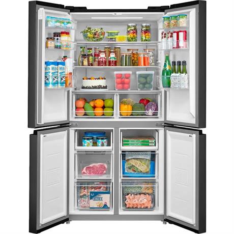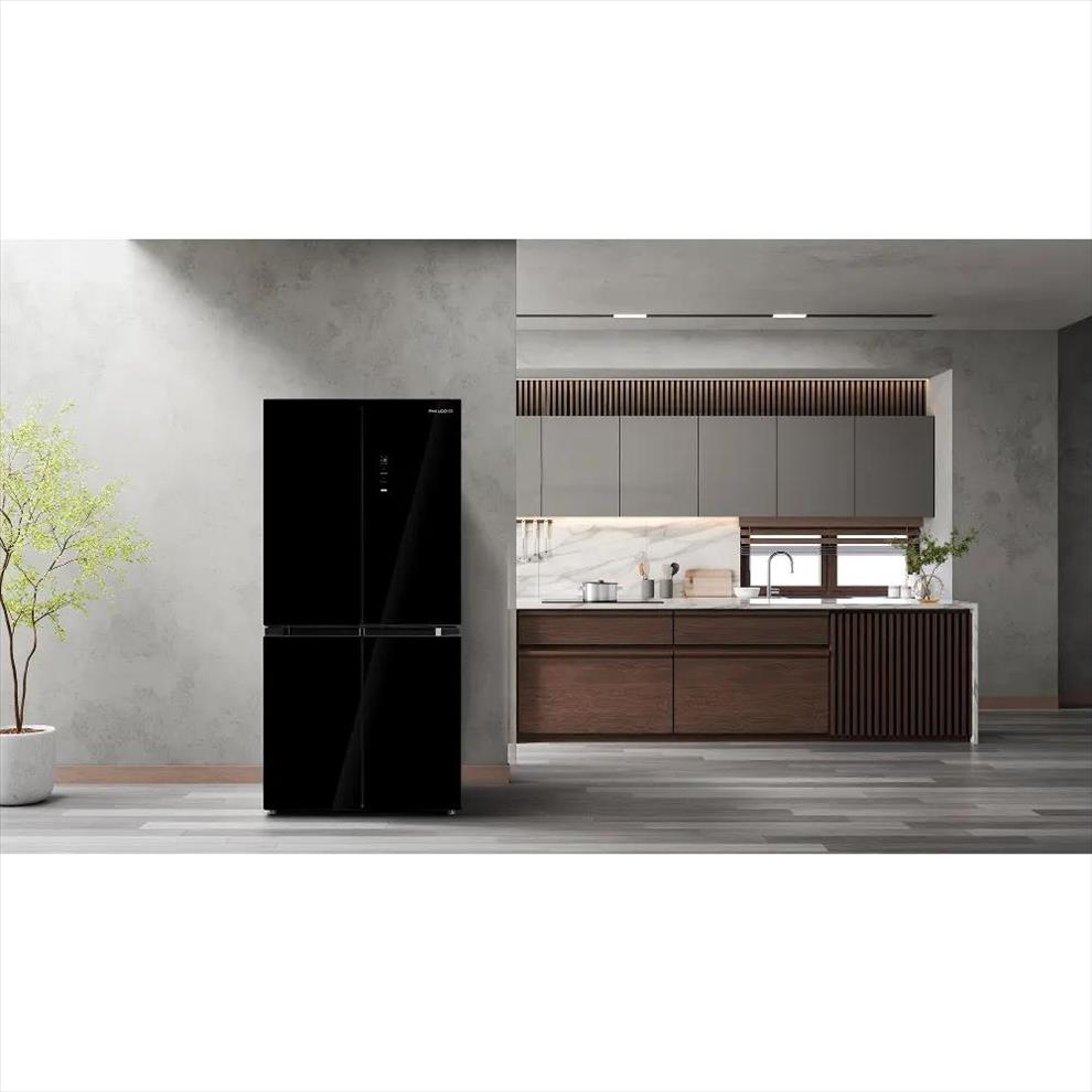 Prostorná čtyřdveřová chladnička v luxusním černém skle