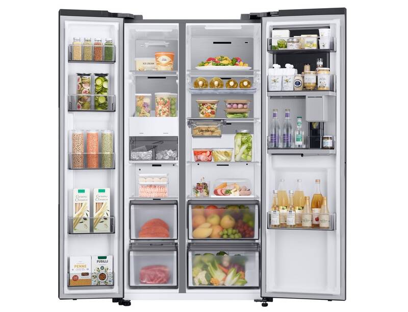 Pořiďte si moderní spotřebič s dostatkem prostoru, který se bude ve vaší domácnosti opravdu vyjímat. Uvedené dokonale splňuje americká chladnička Samsung RH69DG895EB1EF, která dokonale splní vaše představy o luxusním spotřebiči. Dosahuje do výšky 178 cm a i zásluhou technologie SpaceMax nabízí skutečně velké množství prostoru. Objem chladicí části činí 403 litrů, mraznička pak nabídne celkový objem 242 litrů. Přehled nad uloženými surovinami získáte zásluhou LED osvětlení.