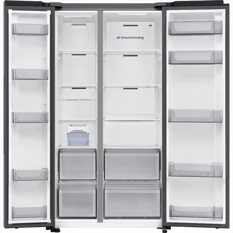 Uvnitř americké lednice Samsung RS70F65QETEO s výškou 178 cm naleznete i přes její kompaktní rozměry efektivně uzpůsobenou skladovací kapacitu ideální pro početnější rodiny. Chladicí část s čistým objemem 420 l má ve své výbavě 4 police z tvrzeného skla a 2 zásuvky na ovoce a zeleninu. Velkokapacitní box Big Vegi Box nabízí praktický prostor pro uskladnění velkého množství čerstvé zeleniny a ovoce. Kovová deska Metal Cooling integrovaná v zadní stěně zadržuje chlad ze vzduchu a rychle vyrovnává tepelné ztráty. Funkce Power Cool aktivuje intenzivní cirkulaci studeného vzduchu, když třeba potřebujete vychladit velký nákup v letních dnech. Funkce All-around Cooling neustále kontroluje teplotu a zajišťuje rovnoměrnou cirkulaci vzduchu na každé přihrádce.