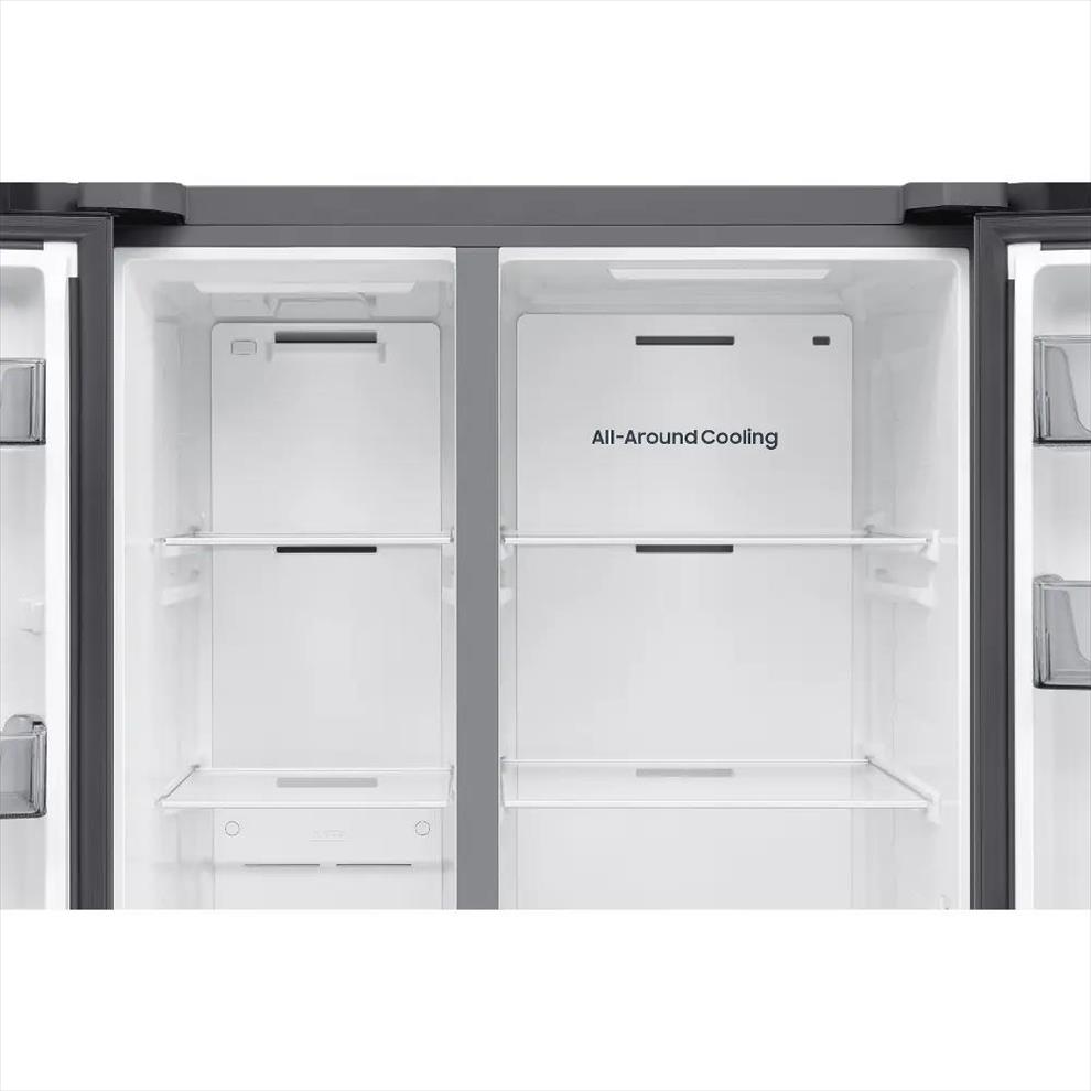 Digitální invertorový kompresor v lednici Samsung RS70F65QETEO je vylepšený o integrovanou AI, díky které potřebuje k provozu podstatně méně elektřiny. Algoritmus upravuje rychlost podle způsobu používání lednice a také hlídá její spotřebu. Motor se méně opotřebovává, nevytváří zbytečný hluk a předchází plýtvání energie.