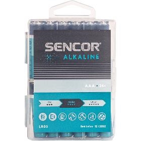 Baterie. Sencor SBA LR03 24 BOX AAA Alk. . Sencor LR03 AAA Alk jsou univerzální jednorázové alkalické mikro tužkové baterie. Vhodné pro každodenní použití u zařízení s malým i středním proudem, jako jsou dálková ovládání, hodiny, budíky, fotoaparáty, myši i klávesnice. Jsou šetrné k životnímu prostředí tím že neobsahují kadmium, rtuť ani olovo a můžete je skladovat až po dobu deseti let. Kvalitní konstrukce je navržena tak, aby bylo možné baterie využívat i v náročnějších podmínkách.