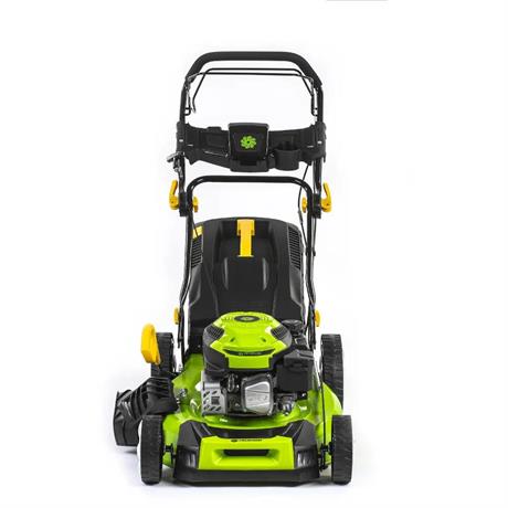 Výškově nastavitelné madlo s měkčenou rukojetí tlumí vibrace a zvyšuje komfort při delším sečení. Ergonomický tvar rukojeti zajišťuje pevný úchop a snadné ovládání. Součástí je i praktický panel na nářadí a nápoje.