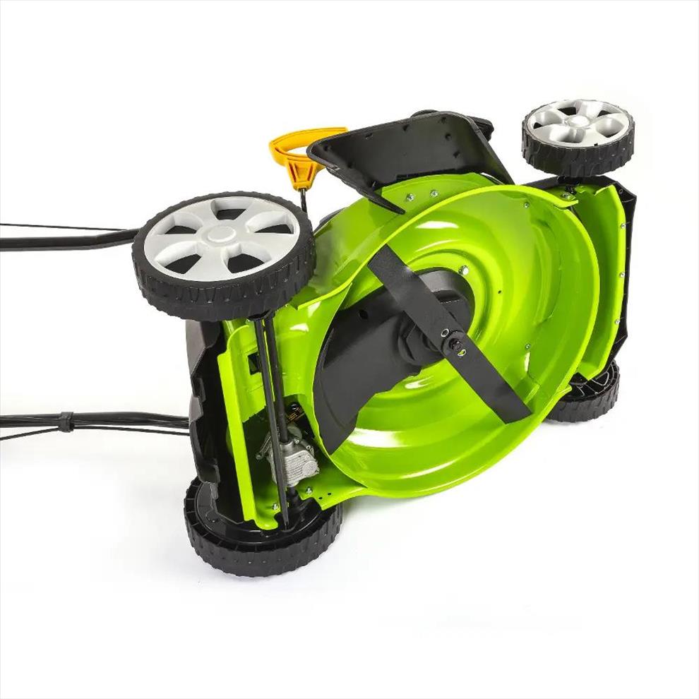 Výšku sečení lze snadno nastavit centrální pákou v 8 pozicích od 25 do 80 mm. Tato funkce zajišťuje přesné přizpůsobení výšky trávníku podle sezóny nebo typu porostu. Nastavení je rychlé a pohodlné i během práce.