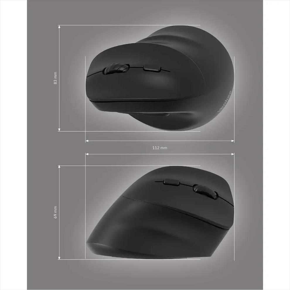 Ergonomická myš speciálně navržena pro vertikální úchop. Podporuje přirozenou polohu zápěstí a minimalizuje nebezpečí syndromu karpálního tunelu. Dualní bezdrátové 2.4G + BT1 + BT2 připojení.