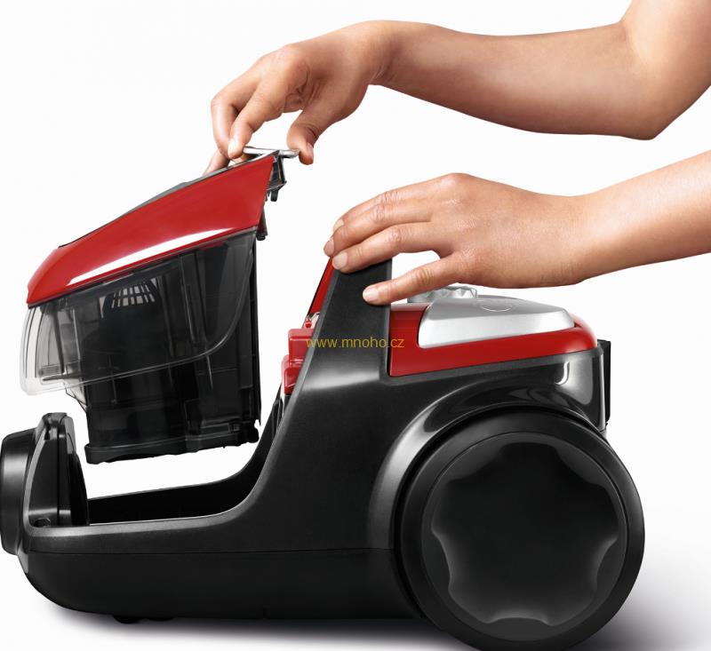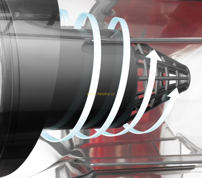- Systém cyklonického proudění vzduchu poskytuje intenzivní sací výkon pro optimální výsledky vysávání