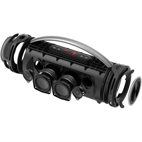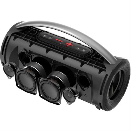 Vysoké kapacita výkonné baterie 10 200 mAh / 3,6 V vám umožní tanec, zábavu a poslech populárních párty hitů po dobu až 13 hodin. Odolné kovové madlo zajistí snadné přenášení reproduktoru, abyste si vychutnávali hudbu, kamkoli půjdete. Déšť ani tryskající kapky vody u bazénu nebo na pláži vám nepokazí zábavu zásluhou voděodolnosti zařízení se stupněm krytí IPX7.