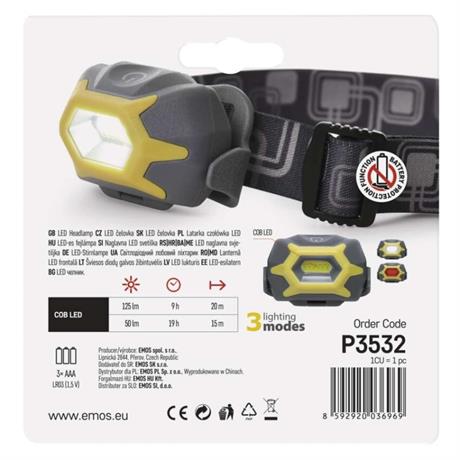 EMOS COB LED čelovka P3532, 125 lm, 20 m, 3× AAA