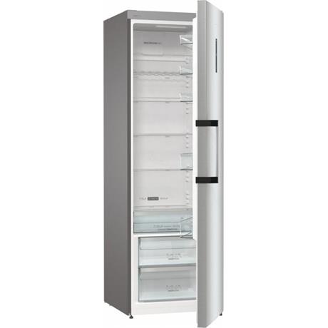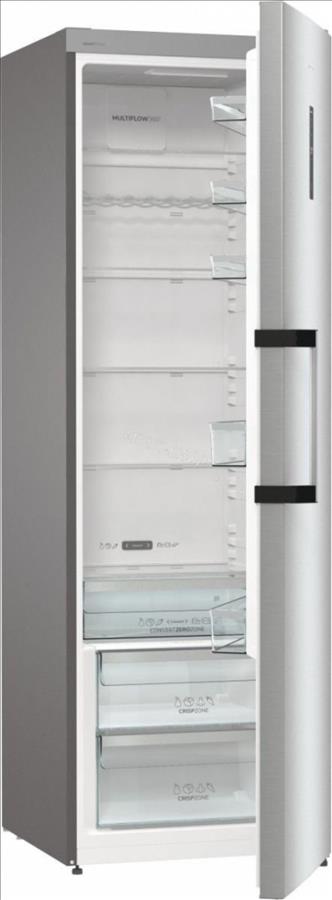 Jednodveřová chladnička Gorenje R619CSXL6 v nerezovém provedení s displejem na dveřích nabízí celkový užitný objem 384 litrů a roční spotřebu energie 92 kWh. Vnitřní prostor je vybaven držákem na lahve, 5 policemi ve dveřích a 5 skleněnými policemi. Chladnička je vybavena zvukovou signalizací, elektrickým ovládáním a automatickým odmrazováním.