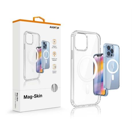 Pouzdro ALIGATOR Mag-Skin iPhone 16 Pro Max - Nová řada krytů Mag-Skin pro iPhone s podporou technologie bezdrátového nabíjení MagSafe. Zadní část krytu je vyrobena z kvalitního dvojitého plastu, ve kterém je umístěna feromagnetická samolepka, která zajišťuje podporu bezdrátového nabíjení MagSafe.
