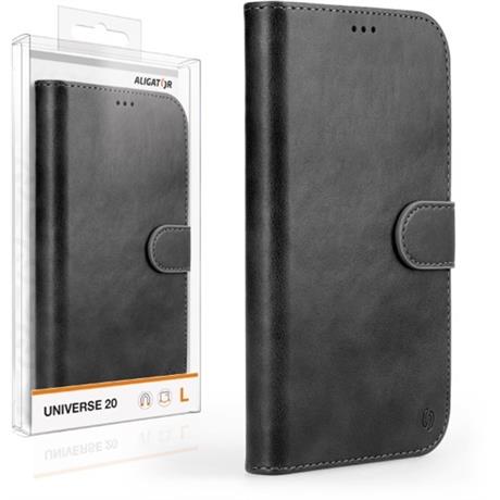 Pouzdro ALIGATOR UNIVERSE 20, velikost L (150*72), černá - ; Univerzální pouzdro; Zavírání pomocí magnetické přezky; Přihrádka na kartu nebo vizitky; Kapsa na bankovky; Tenké provedení; Kvalitní zpracování; Elegantní design; Snadné uchycení mobilního telefonu pomocí prémiové nano podložky