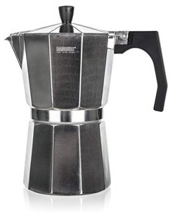 Kávovar BRIA, 9 šálků je tradiční kávovar pro domácí přípravu chutné silné kávy. Je vhodný pro použití na plynových, elektrických a sklokeramických deskách. Hliníkové tělo kávovaru již po několika šálcích získá patinu, která je pro správnou chuť kávy nepostradatelná. Kávovar je opatřen bezpečnostní