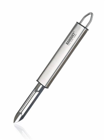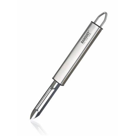 Škrabka EXCELLENT 18,5 cmŠkrabka EXCELLENT 18,5 cm na loupání různých druhů ovoce a zeleniny. Škrabka je vyrobena z nerezové oceli a má praktické držadlo s očkem pro možnost závěsu.