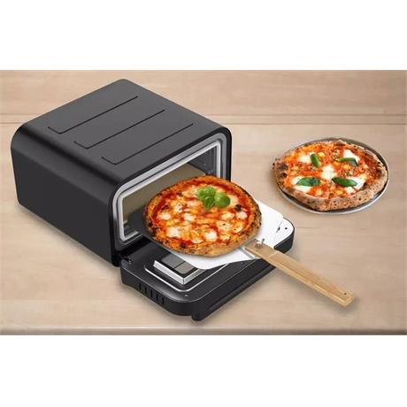 pec na pizzu • kámen na pizzu 320 × 320 × 10 mm • teplota až 450 °C • příkon 1600–1850 W • 5 přednastavených automatických režimů • možnost manuálního nastavení teploty • samostatně nastavitelná teplota horního a spodního ohřevu • indikátor předehřátí • zvuková signalizace • bezpečnostní sklo • tepelně izolovaná rukojeť • stabilní nožičky • lopatka a krájecí kolečko na pizzu součástí balení • kovové provedení • rozměry 488,5 × 440 × 284,5 mm