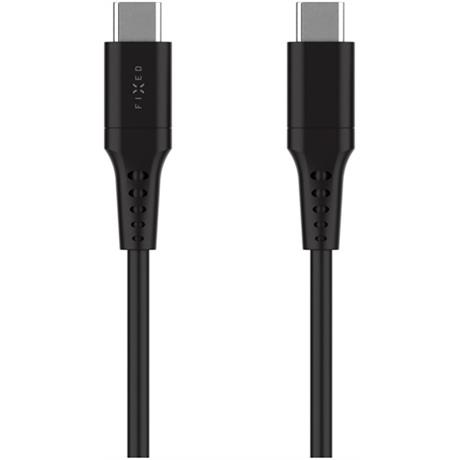 Krátký nabíjecí a datový Liquid silicone kabel FIXED s konektory USB-C/USB-C a podporou PD, 0.3m, USB 2.0, 60W, černý