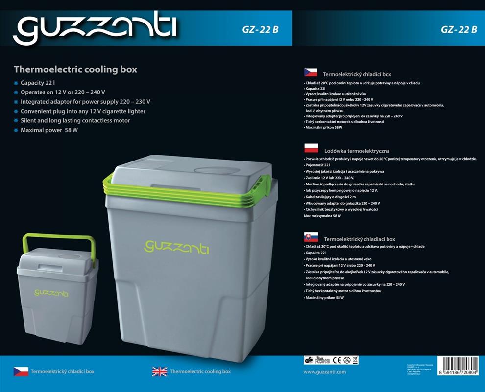 Chladí až 20 °C pod okolní teplotu a udržuje potraviny a nápoje v chladu