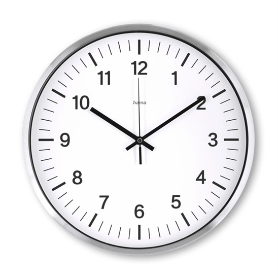 nástěnné hodiny řízené rádiovým signálem DCF; analogové zobrazení času;velký bílý ciferník s černými arabskými číslicemi;napájení: 1 AA Mignon baterie (součást balení);