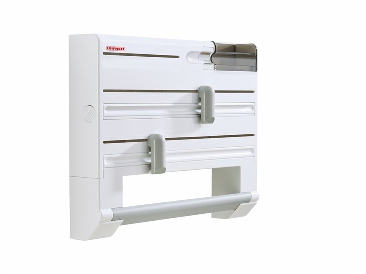 praktický držák s integrovaným dávkovačem na samolepicí pásku, s extra prostorem na malé drobnosti a extra prostorem na sáčky do mrazáku, záruka 3 roky