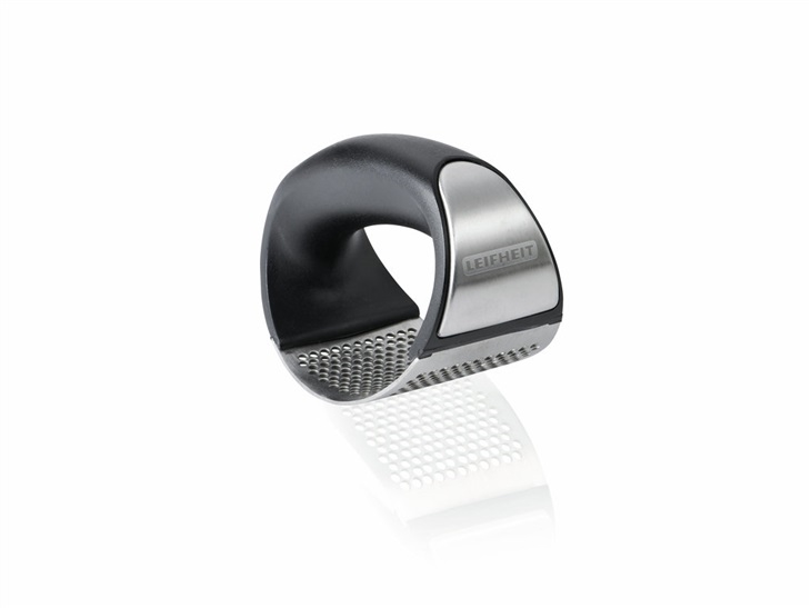 inovace v lisování česneku, díky ostrým hranám děr lisu je česnek nařezán a ne rozdrcen, čímž je zachována jeho chuť a aroma, moderní design dotváří kombinace nerezavějící ocele s vysoce kvalitním plastem, snadná údržba, vhodný do myčky nádobí, záruka 5 let