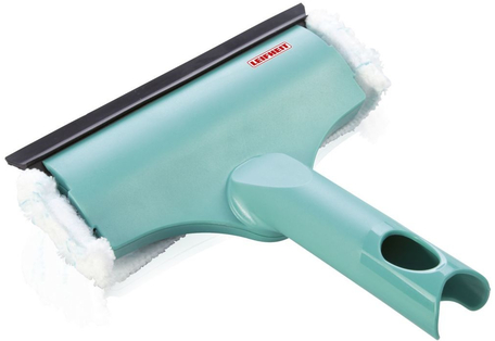 použití na menší okna, funkce 3 v 1 - náhrada na mytí oken a rámů + gumová stěrka na stírání, náhrada je vyrobená z mikrovlákna s připevněním na suchý zip, šířka 20 cm, Click-systém na upevnění násady,tyrkysová