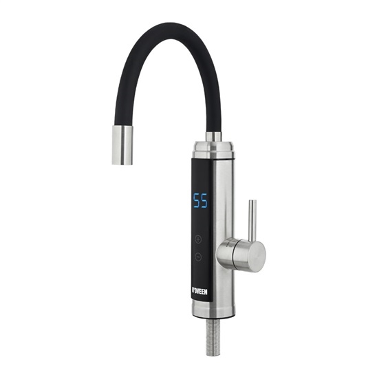 montáž na desku, max teplota vody 60st.C, průtok 2-2,5 l/min, krytí IPX4, součástí je kabel s vidlicí, LED indikace teploty, flexibilní hlavice, materiál NEREZ ocel