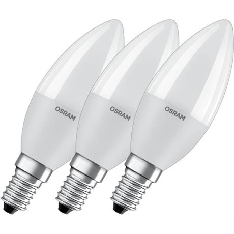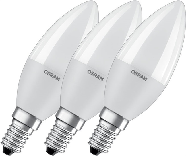 Osram LED žárovka VALUE CLAS B 60 FR 7.5 W/2700 K E14, Nestmívatelná, Tvar baňky svíčka, Patice E14, Světelný tok 806 lm, Příkon srovnatelné obyčejné žárovky 60 W, Jmenovité napětí 220 až 240 V, Jmenovitý výkon a příkon 7,5 W, Životnost 10 000 hodin, Barva světla teplá bílá, V balení 3 kusy žárovek