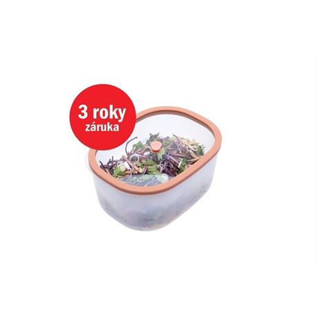 Objem dózy: 2.3 l, dvoustupňová ochrana uzavření, dóza na potraviny s BPA free plastu + skleněné víko, vhodné do myčky nádobí, mrazničky i mikrovlnky, vyrobeno ve Slovinsku