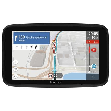 GPS navigace pro velká vozidla, 6" kapacitní displej, rozlišení 1280x720, mapy Evropa s měsíční aktualizací bez příplatku, výdrž baterie 1hod, služba TomTom Traffic včetně předplatného, Routebar, pohyblivé navádění, upozornění na rychlostní radary na 6 měsíců, aktualizace přes WiFi, otočný držák