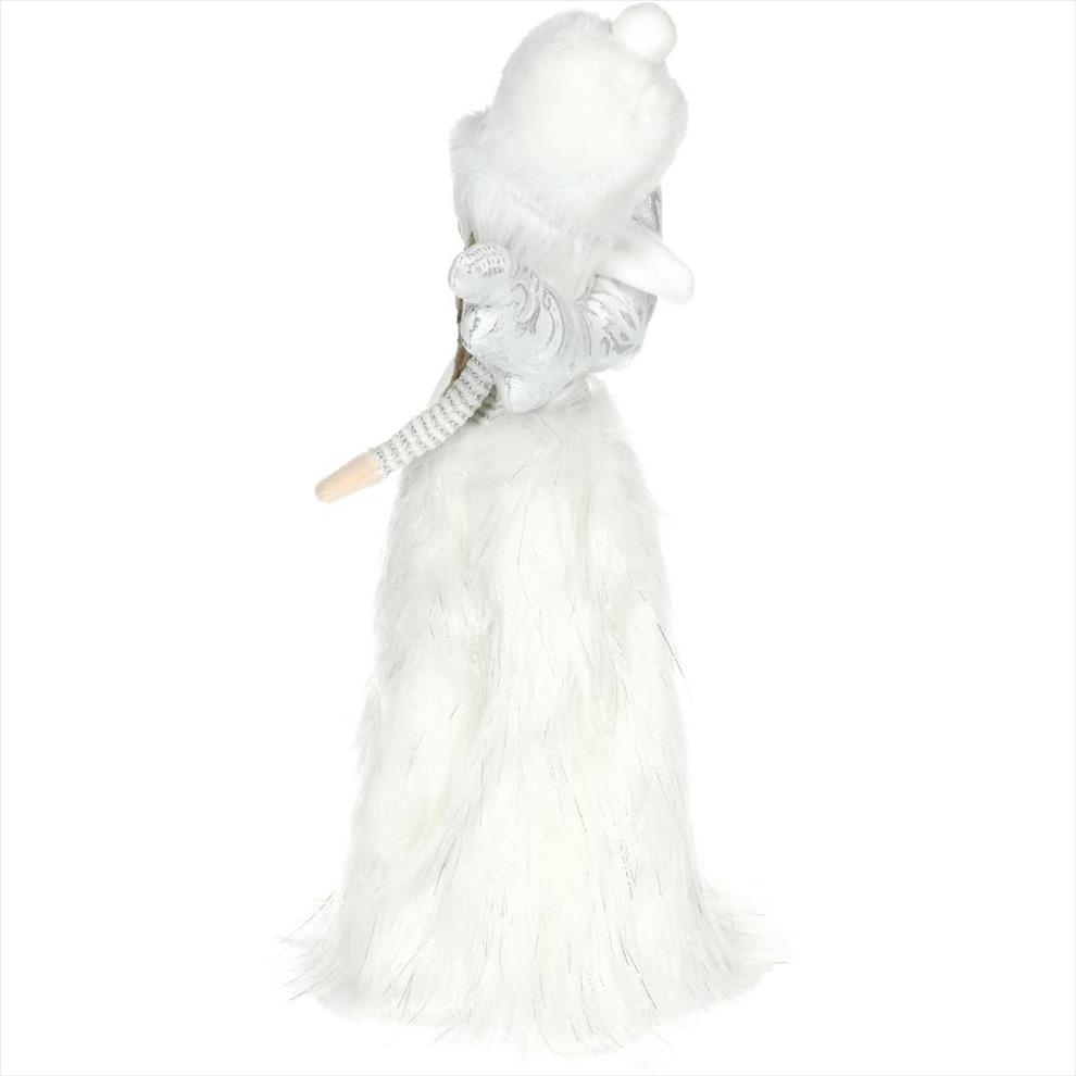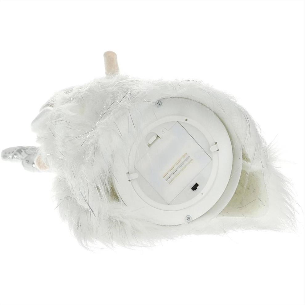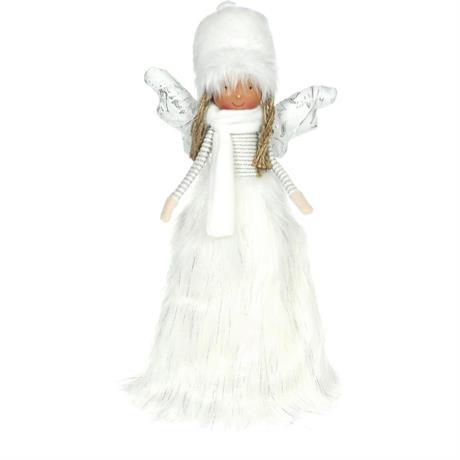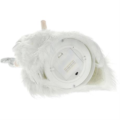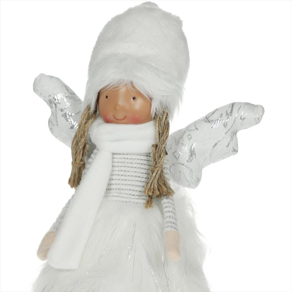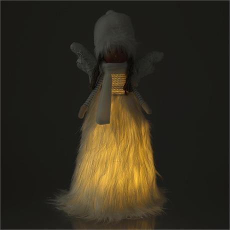 Světelná dekorace anděl v bílé oblečku, materiál plyš, velikost 21 x 17 x 47 cm, počet LED 6, barva světla teplá bílá, napájení 3x AA (nejsou součástí balení)