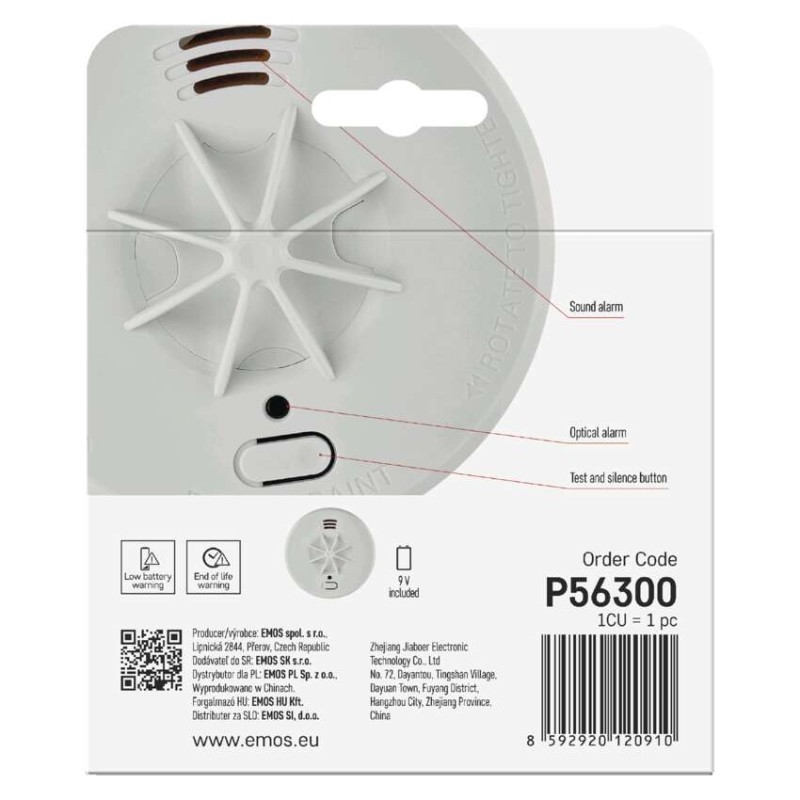S detektorem požáru máte vše pod kontrolou. Jeho součástí je také vyměnitelná 9V baterie s životností 5 let, na jejíž výměnu detektor sám upozorní díky inteligentní indikaci slabé baterie. Když se baterie blíží ke svému konci, zařízení vás okamžitě upozorní jak optickým, tak akustickým signálem.