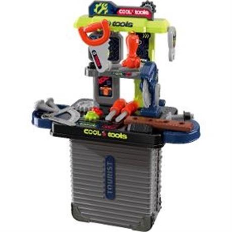 Dílna v kufříku obsahuje vše, co malí kutilové potřebují – 23 kusů dílenského náčiní a doplňků, se kterými mohou montovat, opravovat i tvořit. Všechny součásti jsou navrženy tak, aby se dětem dobře držely a byly bezpečné.
