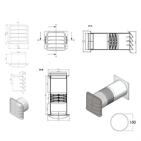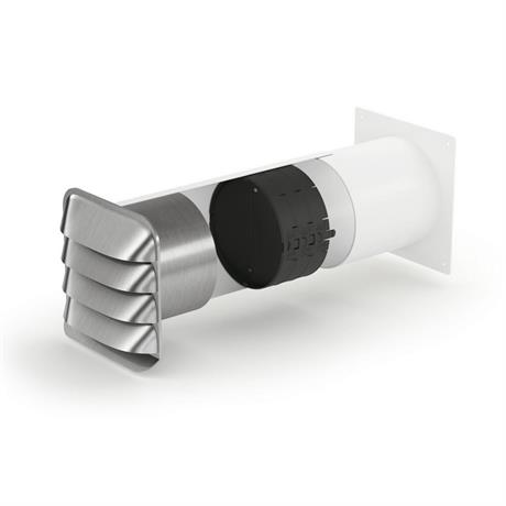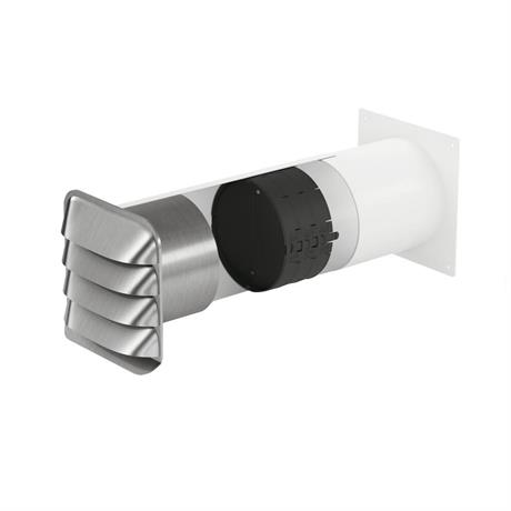 Teleskopická stěnová příruba s Thermoboxem a venkovní nerezovou žaluzií