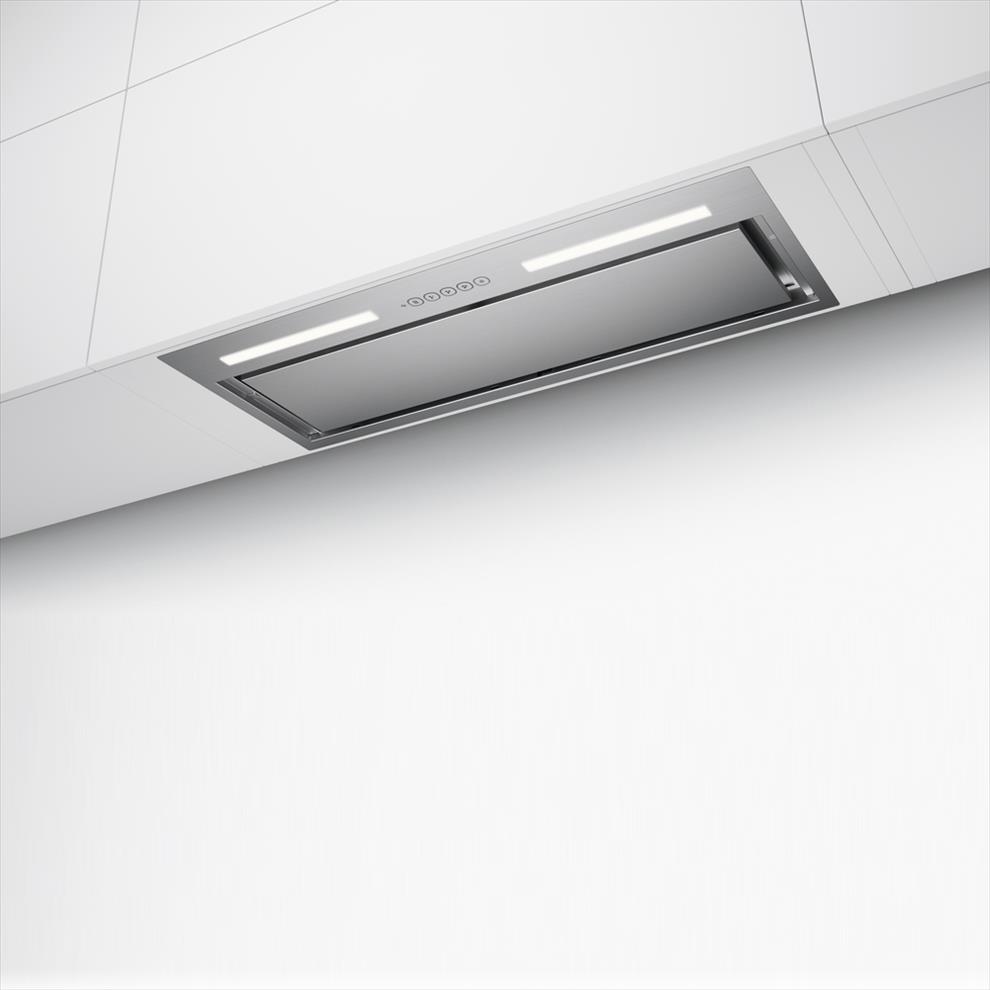 Vzduch je nasáván zúženým profilem po obvodu sací zóny, čímž se výrazně zvyšuje jeho rychlost a schopnost účinně zachycovat okolní páry. Nerezový krycí panel navíc tlumí hluk z ventilační jednotky a snižuje tak celkovou hlučnost až o čtvrtinu.