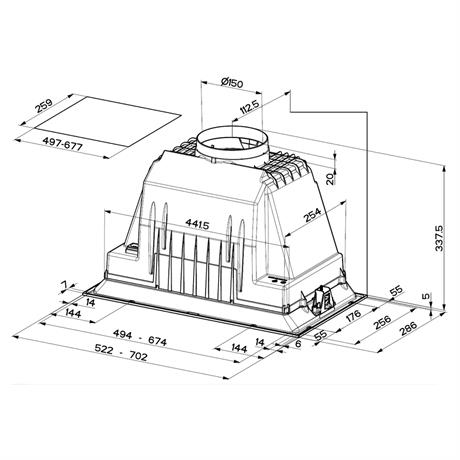 kuchyňská digestoř vhodná pro vestavbu do většiny kuchyňských skříněk, kde působí nenápadně a elegantně.