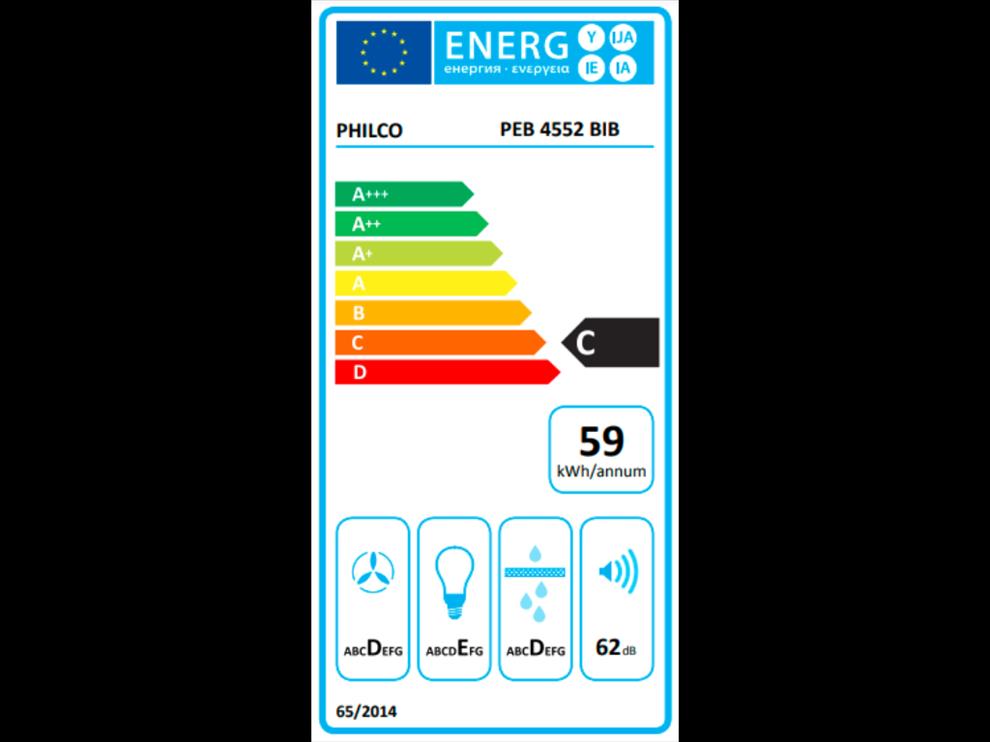 Vestavný odsavač. Philco PEB 4552 BIB. . LED ukazatele. Ovládání dotykové a bezdotykově gesty. 3 rychlosti výkonu. Výkon odsavače 381 m3/h. LED osvětlení 2x 1,5W. 1x hliníkový filtr. Uhlíkový filtr typu Air 2. Průměr odtahu 15cm. Hlučnost: 62 dB. Možnost recirkulace. Zpětná klapka. Energetická třída C. 1x odtah. . Barva černá. Rozměry: (V x Š x H) 31,8 x 52 x 29,5 cm. Hmotnost: 8,2 kg