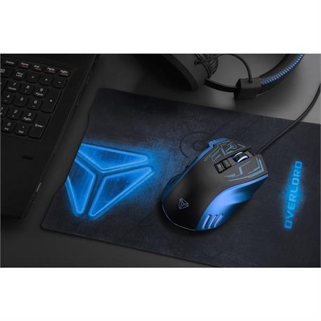 Herní myš YENKEE YMS 3028BE OVERLORD. 7 programovatelných tlačítek, Přiložený software, díky kterému nastavíte barvu podsvícení. 4000 Dpi.