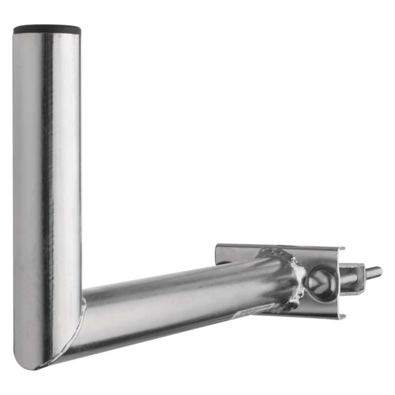 Univerzální držák antén Pro instalaci na stožár. Průměr trubky je 40 mm, výška 150 mm a délka od základny (zdi) je 350 mm. Držák je povrchově upraven galvanickým zinkováním.
