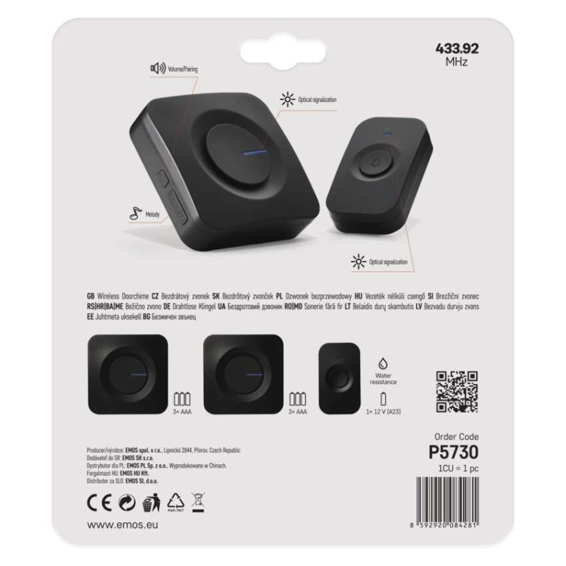 EMOS Domovní bezdrátový zvonek P5730 na 3x AAA
