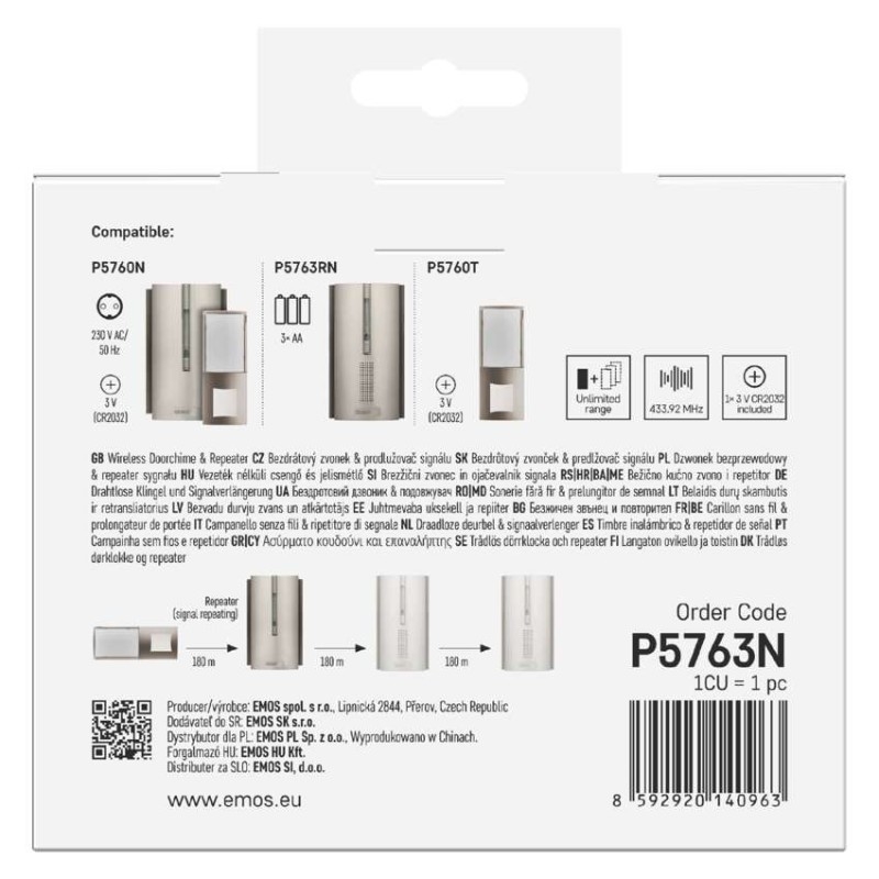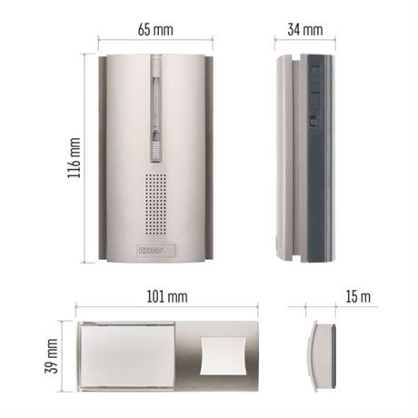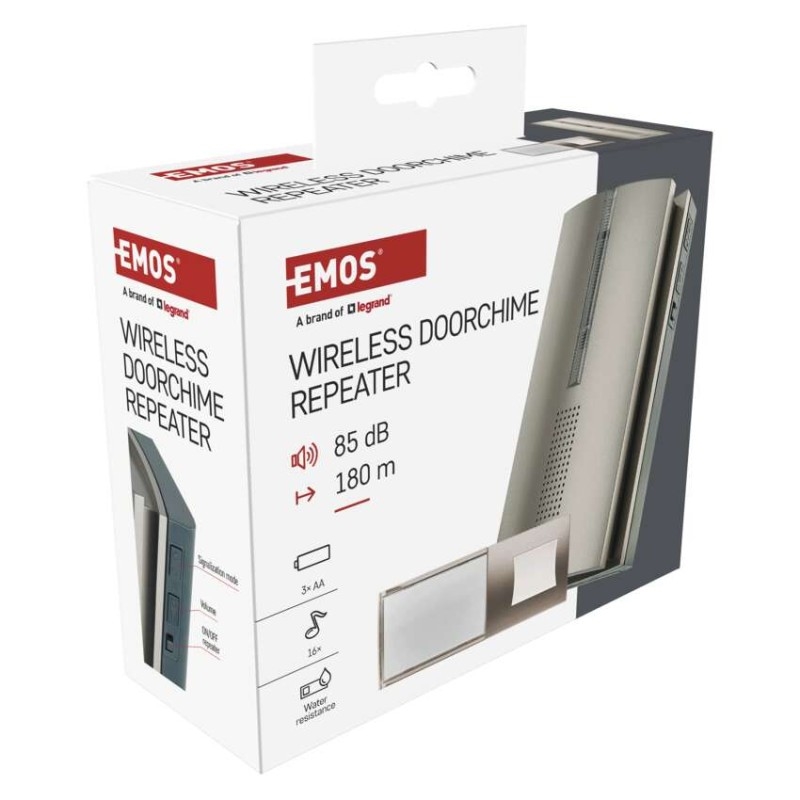 Spolehlivý zvonek s funkcí prodlužovače signálu (repeater), který se hodí nejen k domu, ale i bytu, nebo do kanceláře. Velkou předností tohoto zvonku je jeho bezdrátové provedení a možností prodloužení dosahu tlačítka zvonku.