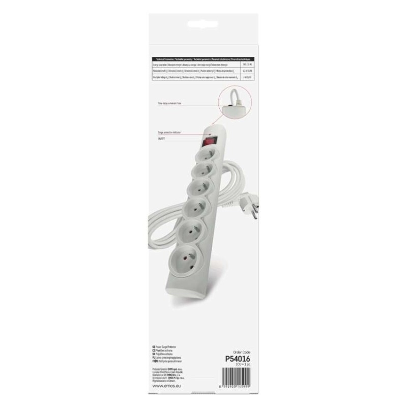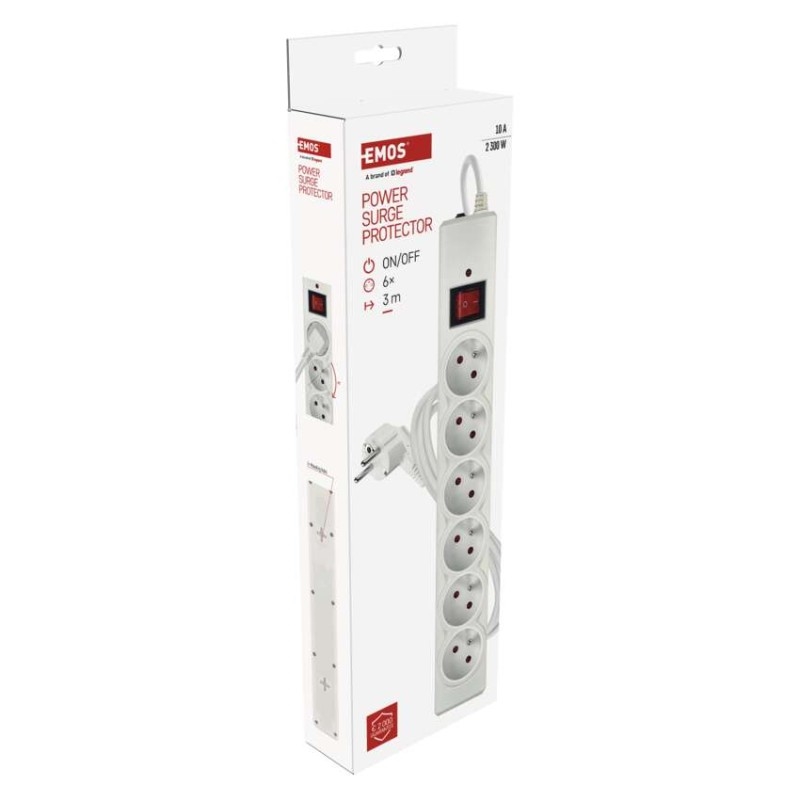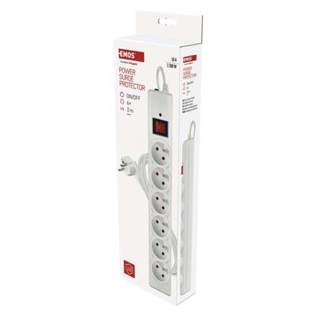 EMOS Přepěťová ochrana – 6 zásuvek, 3 m, bílá