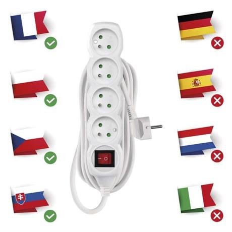 Při montáži na stěnu je nutné použít vrut se zápustnou hlavou PZ max. průměr 2,5–3 mm, délka 30–40 mm. V případě použití jiného průměru hrozí poškození plastové části otvoru. Pokud dojde k poškození plastové části otvoru, prodlužovací přívod nepoužívejte.