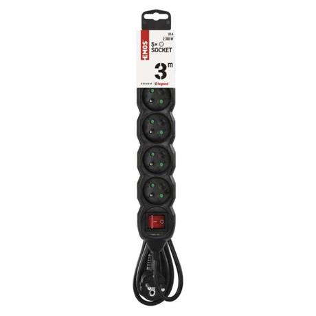 barva: černá|délka: 3 m|dětské clonky: ano|krytí: IP20|materiál zásuvky a vidlice: plast|max. zátěž: 2 300 W|napětí: 250 V~|počet zásuvek: 5|prodejní obal: 1 ks, závěs|proud: 10 A max.|průřez vodiče: 1,0 mm2|typ izolace: PVC|USB výstup: ne|vodič: H05VV-F3G|vypínač: ano