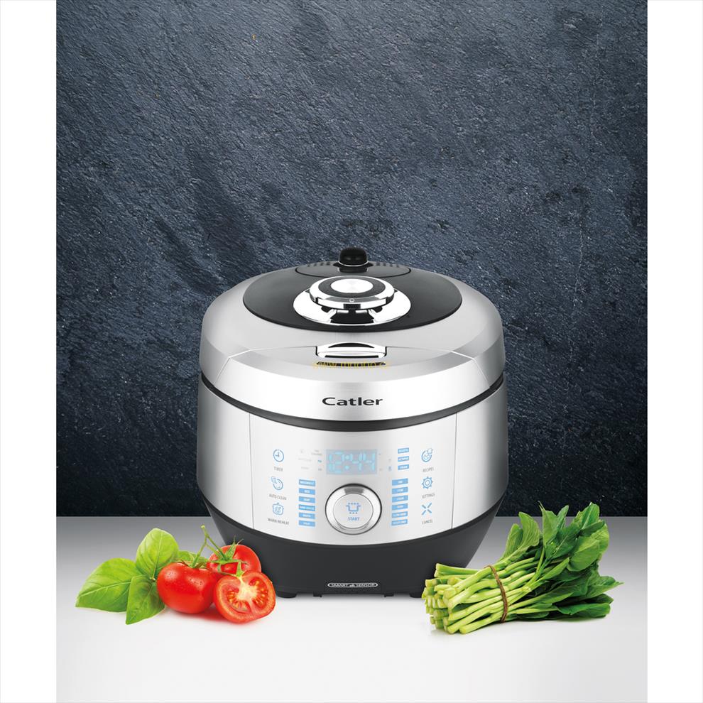 Indukční multifunkční hrnec o objemu 3 l pro 3D přípravu pokrmů. Catler MC 8010 vaří, smaží, peče, dusí, vaří v páře a disponuje funkcí pro udržení teploty. Nechybí ani odložený start, dětský zámek a časovač.
