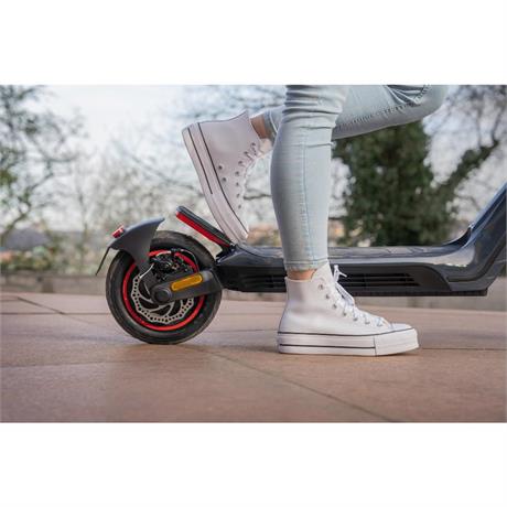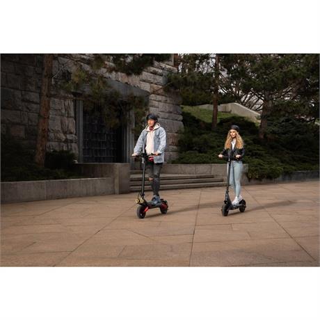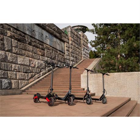 Přizpůsobte si jízdu přesně podle svých představ. Na výběr máte mezi 4 jízdními režimy, které vám umožní navolit si ideální rychlost: STD s rychlostí až 20 km/h, ECO s rychlostí až 10 km/h, WALK s rychlostí až 6 km/h a SPORT s rychlostí až 25 km/h. Maximální požitek a komfort je zajištěn odpružením předního i zadního kola a 10palcovými bezdušovými pneumatikami s gelem pro zacelení defektu, které vám umožní si nerušeně vychutnat každou cestu. Navíc je elektrická koloběžka Sencor SCOOTER S80 vybavena tempomatem, takže jen zvolíte rychlost, a můžete se soustředit na vaše okolí. A pokud budete potřebovat koloběžku zabrzdit, na duální systém brzdění se můžete 100% spolehnout. Mechanická kotoučová brzda je zároveň podporovaná i brzděním motorem pro vaší absolutní bezpečnost na cestách.