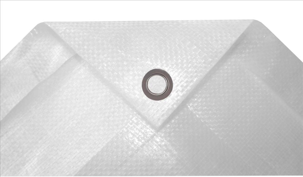 Zakrývací plachta s oky je vyrobená z polyetylenových vláken a laminována nepromokavým filmem.
