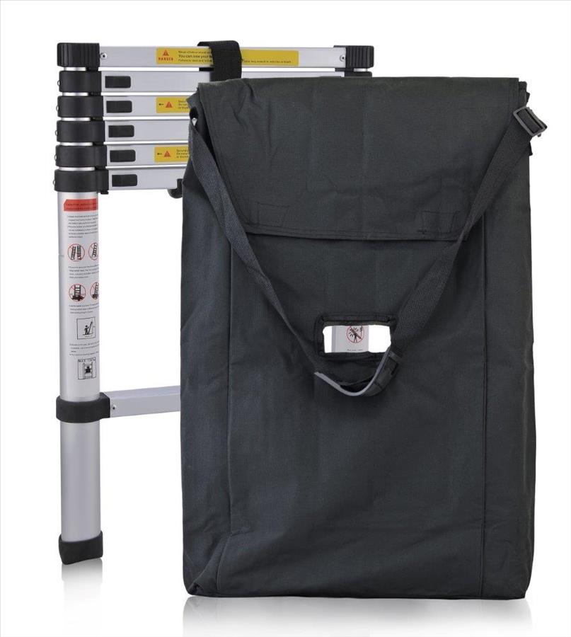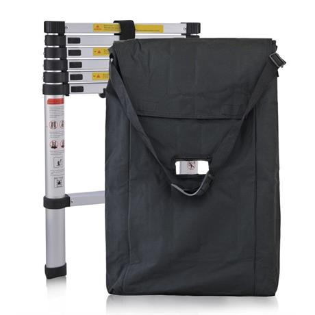 Její pohodlný trak je opatřen nárameníkem, díky kterému se váha žebříku rozloží na větší plochu a manipulace s ním tak bude mnohem jednodušší. Uprostřed tašky na teleskopický žebřík je otvor pro rychlé a pohodlné uchopení žebříku.