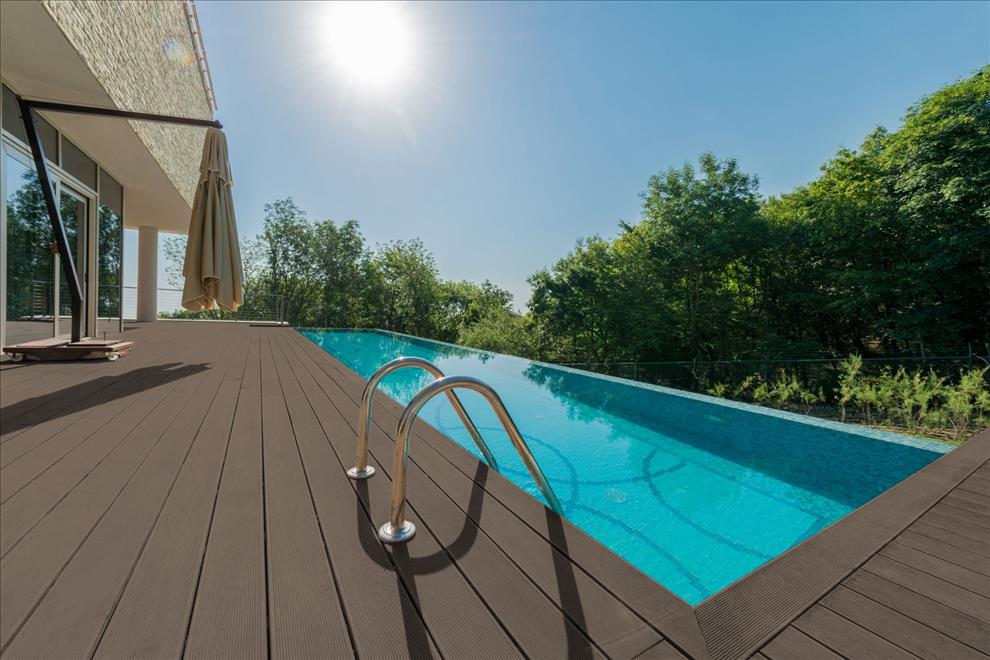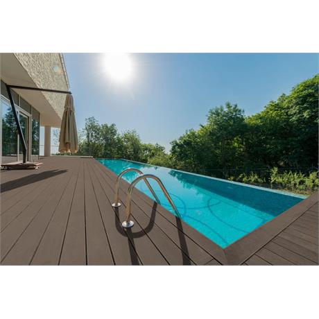 Bezpečný a protiskluzový povrch – Na rozdíl od dřevěných teras můžete po WPC terasách a podlahách chodit klidně i na boso, jelikož vám nebude hrozit zadření třísky. Jsou opatřeny protiskluzovou vrstvou, takže je můžete využívat u bazénů či za deště.