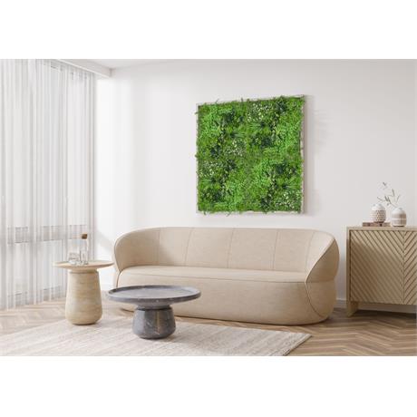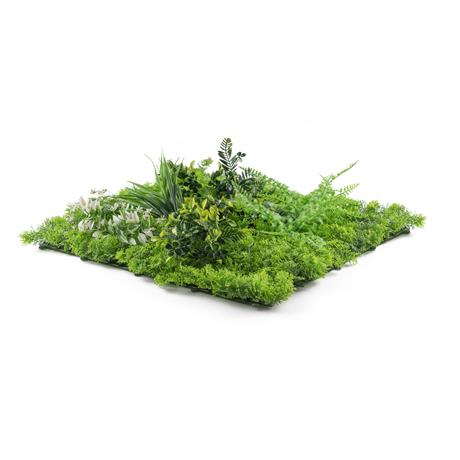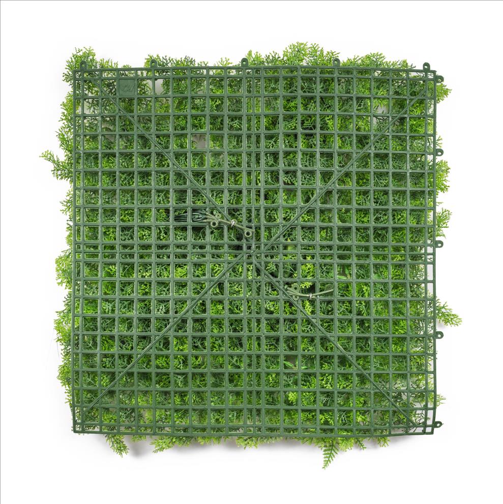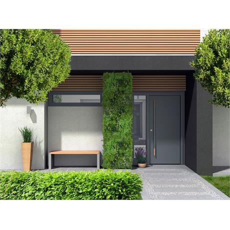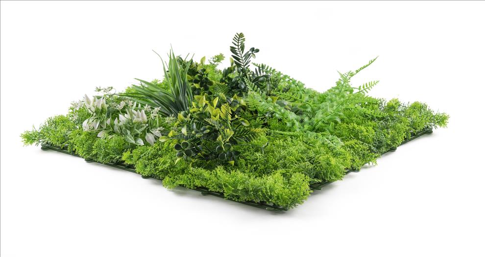 Jeden panel, spousta možností. Použijte jej jako zajímavý interiérový doplněk, vytvořte zelenou stěnu v obýváku, přírodní zákoutí na balkoně, nebo zakryjte starý plot. Panely o rozměrech 50 x 50 cm snadno zkombinujete do větších celků díky modulovému systému rastrů a příchytek na zadní straně každého panelu. Zvládnete to bez vrtání a nářadí, stačí zip páska nebo obyčejné háčky. Ať už panely připevníte na betonovou zeď, dřevěné obložení nebo sádrokarton, výsledek bude vždy perfektní. A co když potřebujete menší rozměr? Pak panel jednoduše zastřihnete a natvarujete podle potřeby.