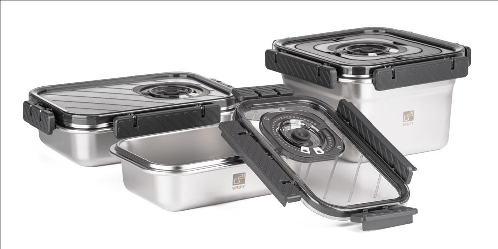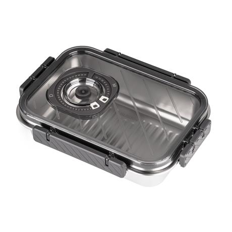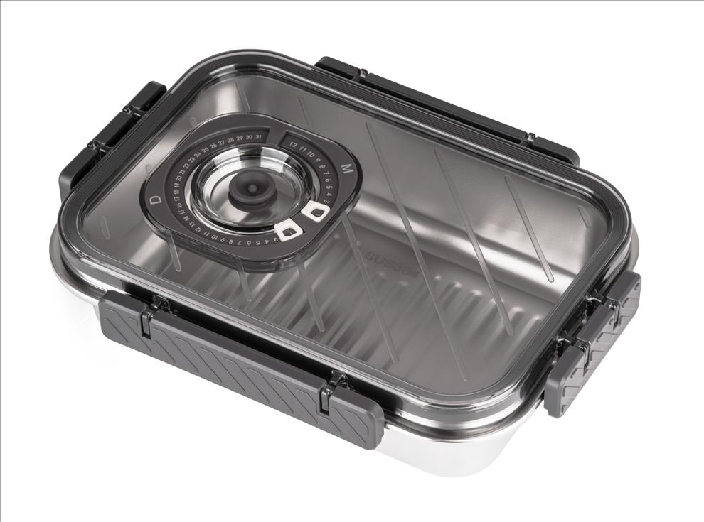 Víko z BPA Free plastu je vybavené vakuovacím ventilem a praktickým nastavitelným ukazatelem data. Budete tak vědět, kdy byly potraviny vakuovány nebo do kdy se mají spotřebovat. Pro uvolnění vakua a otevření dózy stačí jemně zmáčknout ventil uprostřed víka.